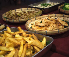 Available on our Mekong river boat, chefs lay out a variety of Lao and European dishes to enjoy with the view.